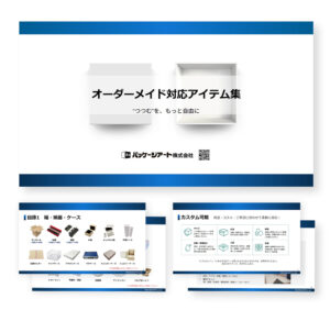 この度、パッケージアート株式会社では、既製品では解決できない課題に応えるための「オーダーメイド対応アイテム集」を公開しました。 本資料では、オーダーメイドで対応できる資材の種類をはじめ、サイズや形状、材質、印刷などのカス